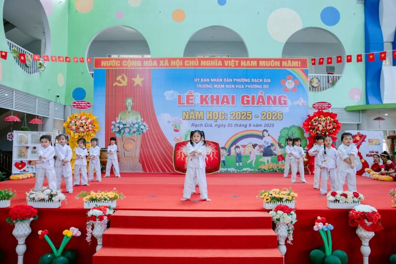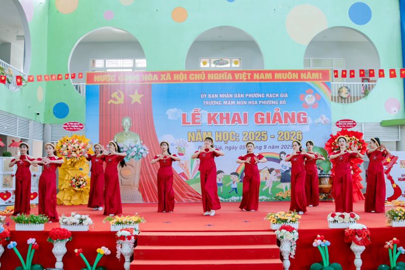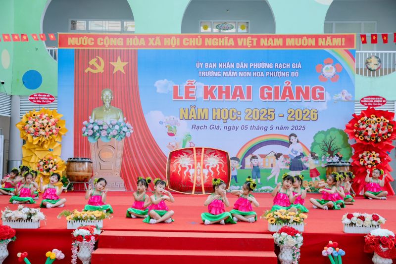 Sáng ngày 05/09/2025, tại Trường Mầm non Hoa Phượng Đỏ, không khí vui tươi và tràn ngập sắc màu yêu thương khi thầy cô và các bé cùng nhau tham dự lễ khai giảng năm học mới